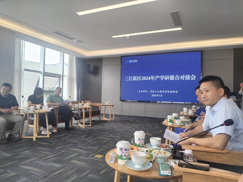 7月4日,由三江新区科技创新局主办的三江新区2024年产学研撮合对接会在区企业人才服务中心215沙龙中心举行。三江新区高端装备局、区科技创新局、区企业人才服务中心相关负责同志,宜宾天原科创设计有限公司、宜宾天原海丰和泰有限公司、四川省宜宾普拉斯包装材料有限公司等企业负责人以及高校成果转化部门、科研团队代表等20余人参加。我校成果转移转化科科长江旭梅、材料科学与工程学院特种高分子材料科研团队专家钟家春、蒲泽军参加了本次撮合对接会。