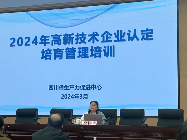 本次培训会是为了促进创新主体培育及高新技术产业发展,落实科技厅《关于四川省开展2024年高新技术企业认定工作的通知》要求而举办,市科技局副局长兰波同志主持,省高企办、四川省生产力促进中心专家金攀静主讲。