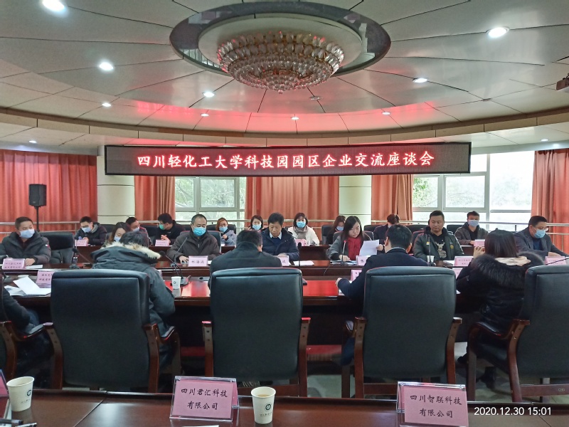 2020年12月30日下午,四川轻化工大学科技园于汇南校区行政楼第二会议室召开以“双创促转化,融合赢未来”为主题的校企座谈会。罗惠波副校长出席本次会议,与在园区孵化的企业负责人代表进行了深入交流。