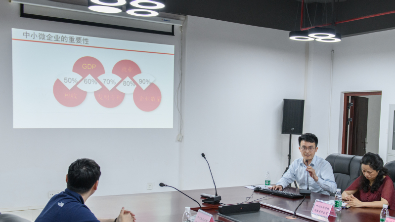 自贡市技术转移有限公司成果转化中心经理钟悦,为园区企业做高新技术企业及科技型中小企业申报培训,中国建设银行自贡分行普惠金融事业部业务主管杨洪波做了科创贷产品的介绍,随后做了企业融资意向征集。