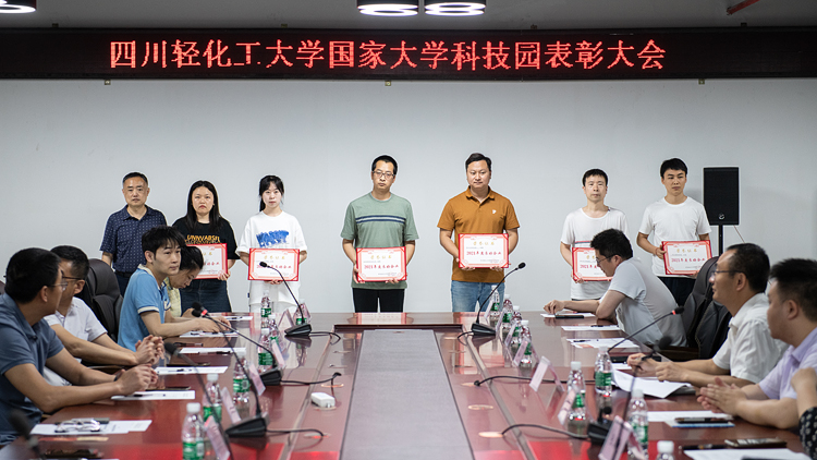 会议由大学科技园管理办公室副主任吴浩主持,首先,表彰四川轻化工大学国家大学科技园2021年度优秀及良好企业,张潇文主任和林海波副主任分别颁发荣誉证书,并发放国家大学科技园创新服务劵,鼓励园区企业开拓进取,为国家大学科技园的建设做出的积极贡献。